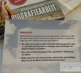 Erinnerungen wecken und mögliche Gesprächsgrundlagen schaffen. Einzeln oder in der Gruppe anwendbar. Verschiedene Karten mit Grundlagentext zur Unterstützung der Spieleleitung.